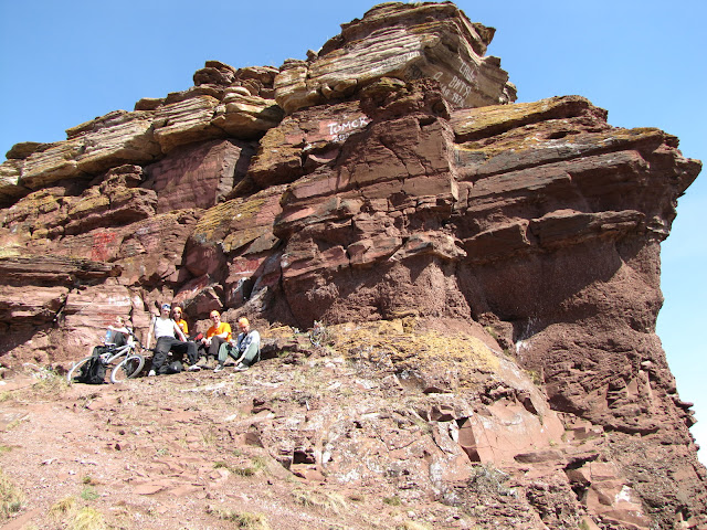 На второй день организаторы предлагали несколько экскурсий. Несколько самых сумасшедших велосипедистов поехали в пещеру Кашкулак – 80 км туда-обратно по грунтовкам-гравийкам с кучей подъемов. Уехали они рано утром, вернулись уже затемно. Другой маршрут: Белая лошадь - Писаница – Сундуки. На Белую лошадь никто из нас не поехал, слишком поздно мы встали. А вот на Писаницу поехали Серега и Леха, а также Утя. Я же решила катать вату, и мы вместе с Анатолием, Медвежутем, Удоканом и Ромой, полезли на сундуки.